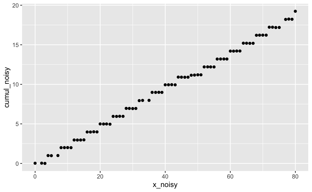 ggplot2::ggplot(sim_dat, ggplot2::aes(x = x_noisy, y = cumul_noisy)) +